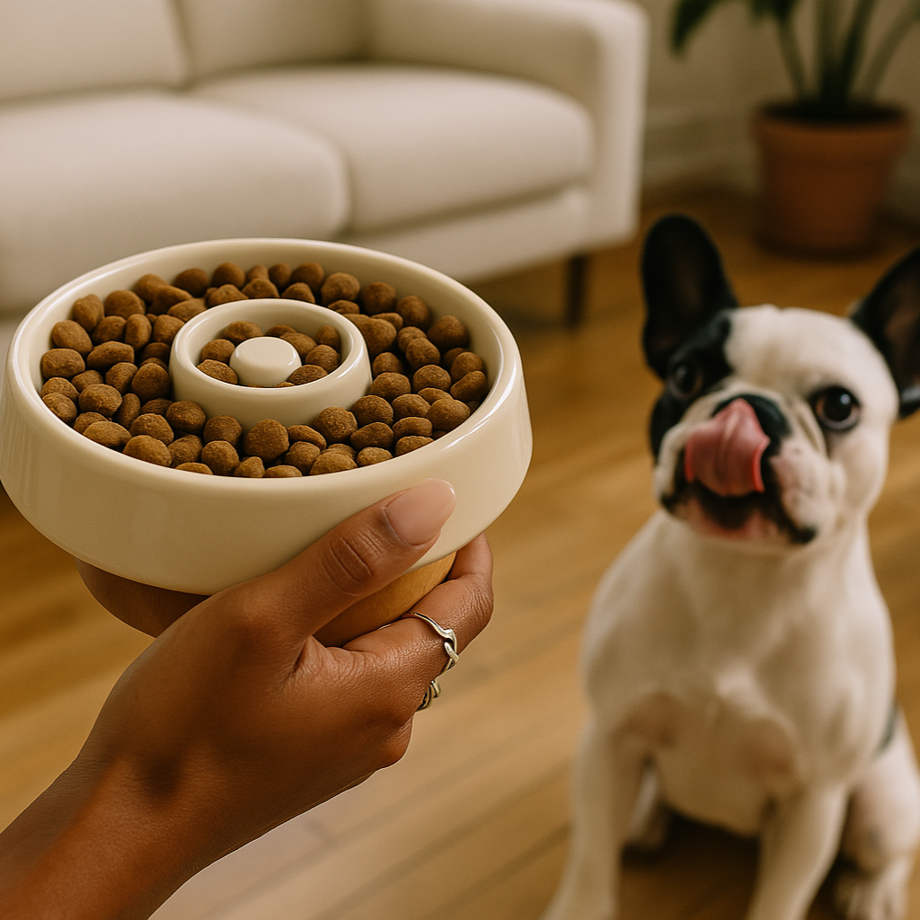 Cette gamelle en céramique anti-glouton est conçue pour mettre un peu d'ordre (et de lenteur) dans ce chaos culinaire.